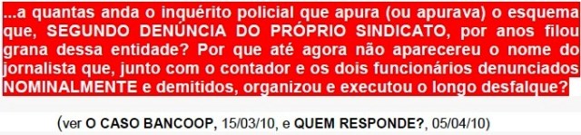 1) se era “jornalística” e verdadeira a tal matéria, por que aquele sindicato (sempre comandado por supostos socialistas defensores da ética e dignidade da pessoa humana) NÃO publicou o referido pedido de resposta/contraditório a que o obrigam os arts. 5, V da CF/88 e 5, h do seu próprio estatuto?