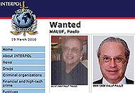“… após investigação conjunta de promotores brasileiros e americanos, iniciada no Brasil em 2001 (…) Em 2007, a Justiça americana determinou a prisão de Maluf pelos crimes de conspiração, auxílio na remessa de dinheiro ilegal para Nova York e roubo de dinheiro público em São Paulo…” (http://oglobo.globo.com/pais/mat/2010/03/19/paulo-maluf-entra-para-lista-de-procurados-da-interpol-916123917.asp)