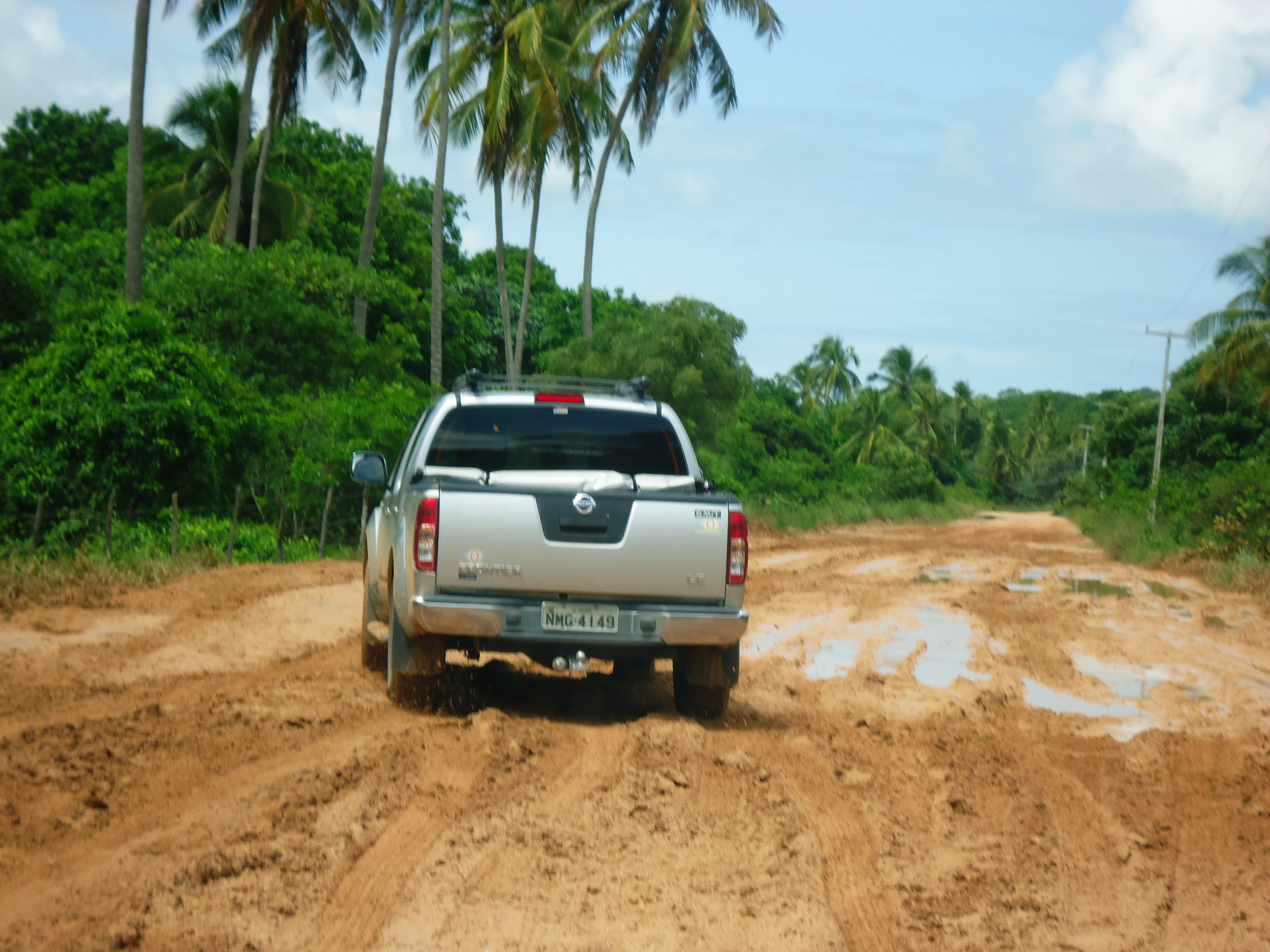 Dunas de Marapé. Essas pegadas são minhas. Fotografei-as na volta, depois de muito andar. As fotos abaixo são de Barra do Jequiá, Jequiá, Carro Quebrado, Massagueira, estrada, etc. Tudo em Alagoas. Algumas vezes não foi fácil chegar, como a foto da 4X4 à minha frente mostra. Boa viagem: