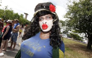 Concordo que foi um crime ambiental não ter levado a máquina: do lugar onde estava, eu teria tirado fotos lindas: com máscaras, rostos rindo, serpentinas, sombrinhas … Hoje, a concha Dorival Caymmi gemeu. Ou ferveu? Você acredita que, talvez em razão da música, dançava-se querendo dançar (não é o caso do prefeito, né?)? Se brincar, acho que até ser feliz, neguinho queria ser, viu? “…Você pensa que cachaça é água…” foi apenas o começo do jogo. A partir daí, aquele antigo Bahia entrou em campo e, num passe de mágica, a nova Fonte Nova ficou pronta (você já notou que aquele Bahia também tá voltando, né, leitor?) Pois é, até as árvores estão cantando. E no Parque, elas cantaram! Cantaram e dançaram! A que me dava sombra, aliás, gritava “gol” o tempo todo. Pode até ser que só tenham começado a dançar com “…Há quem diga que eu dormi de toca … Eu quero é botar meu bloco na rua/ brincar, botar pra gemer…”(Sérgio Sampaio. Veja MARIVALDO BASTOS / MULTIUSO9), talvez o ponto em que as mãos e as bocas (sem que o time pedisse!) mais se elevaram aos céus.
