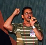 10/03- Sempre que passo correndo por ele, grito: ‘grande Osni’ (é comum vê-lo na orla). Ele levanta o polegar com um riso agradecido. Quando eu voltava, hoje, sabia que era ele à minha frente e desconfiava de que o corpanzil desajeitado, calção sem camisa e sandália pouco cuidada andando e falando meio pendido prum lado fosse quem parecia que fosse. Não precisei acelerar o passo porque quem vinha de lá pra cá comentava: ‘sabe quem são aqueles dois, ali?’.