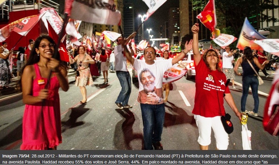 “… A sigla [PT] constatou uma diminuição do número de doadores neste ano, em comparação a pleitos anteriores. Houve, segundo dirigentes do partido, redução das contribuições sobretudo de bancos, que têm alegado que os lucros neste ano serão menores que os projetados no início de 2012…” Huummm! Sobretudo de bancos? Então, sendo verdade o que essa imprensa burguesa diz, quanto maior o lucro dos “odiados” bancos… Otra cosita más: já que se rejeita tanto a democracia burguesa, por que não esta ainda mais vil parte??