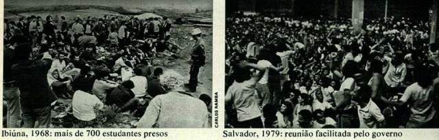 1979: na parte politizada da universidade (1% da população) só se falava na recriação da UNE e (depois de 80) na formação de um Partido dos Trabalhadores. Eu tava naquele congresso (Centro de Convenções; governo ACM), onde, calvo mas ainda com cabelo, falou o talvez recém-anistiado José Serra. Figuras de proa do evento: Vacarezza, Javier, Luiz Caetano, Messias Gonzaga… Quem mais? Não lembro (Lídice, Alice…). Sei que o papo comum a (quase) todas as tendências eram “pelo” restabelecimento dos vínculos diplomáticos entre Brasil e o mundo socialista (em especial Cuba e Alabânia) e “por um Brasil socialista…”. Importante: as fotos da época eram sem riso, bem diferenteS das atuais…