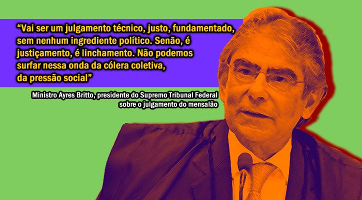 - “…nós do Judiciário somos afeitos à ideia-força de que nada pode prejudicar a nossa análise objetiva dos fatos, a nossa isenção, a nossa imparcialidade, isso é intocável …” (http://noticias.uol.com.br/politica/ultimas-noticias/2012/04/14/leia-a-transcricao-da-entrevista-de-ayres-britto-a-folha-e-ao-uol.htm);