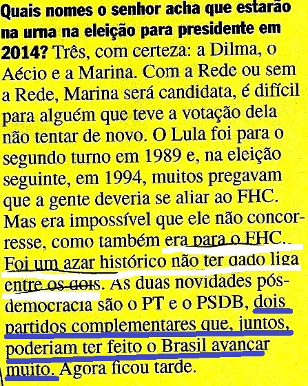 “…O tucano [FHC] reconheceu competência nos petistas: