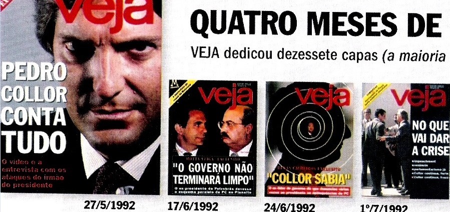 declarar, no documentário, que a cobertura da imprensa (toda de pau em cima de Collor, como em cima dos mensaleiros, hoje) foi “corretísma”… Já Luiz Nassif, talvez lulista roxo hoje, aparece no mesmo filme dizendo que “pulou fora da campanha” porque estaria havendo “manipulação de informação, bandidagem…”. Não entendi. E fiquei com a impressão de que ele estava se referindo à campanha do Fora Collor.