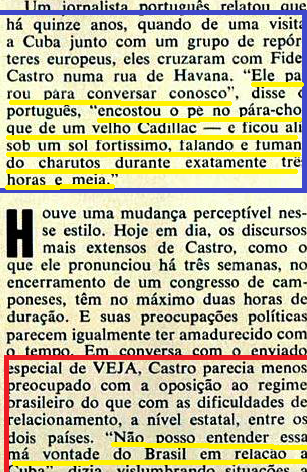 Notou no carinho da burguesa americana, leitor? Bem, Fidel já havia concedido uma entrevista à imprensa burguesa americana, mas certos trechos teriam sido retirados da versão divulgada na TV cubana: