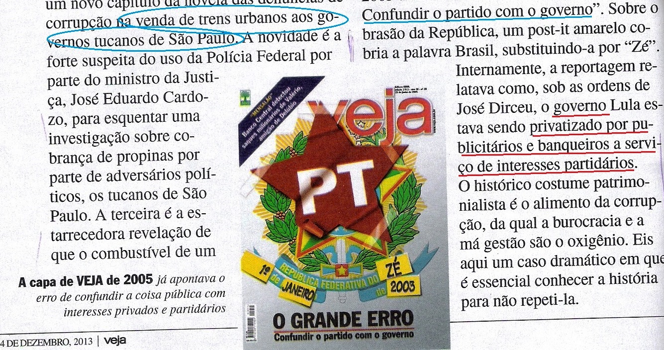 Veja, também: UM OUTRO MUNDO É POSSÍVEL (“VEJA MENTE”), NO TEMPO DO “PIG” (“PARTIDO DA IMPRENSA GOLPISTA”), OS PROFISSIONAIS E OS AMADORES… UM POUCO DE MEMÓRIA DE QUANTO O PT ERA OPOSIÇÃO, AMORAL DA HISTÓRIA, MINISTRA ELIANA CALMON E AS RAZÕES DO ILUMINISMO, ARQUITETOS DO PODER, O POVO NÃO É BOBO, ABAIXO…, PARABÉNS, VEJA!, PARABÉNS, VEJA 2 , DESCANSANDO…