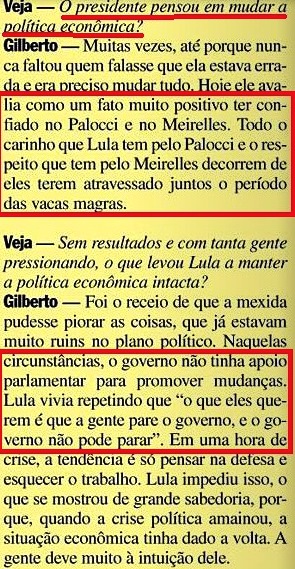 presidente. Na entrevista, Gilberto conta histórias reveladoras. Decepcionado com os resultados iniciais da política econômica