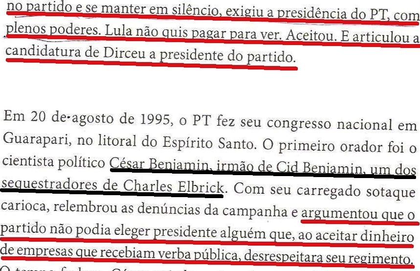 Explicando: o PT tinha o grande capital como inimigo e não aceitava doações de banco nem empreiteira… Continuando o filme que você parece játer visto, leitor: