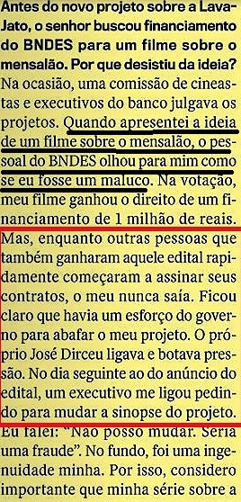 Já houve um tempo em que Lula “botava a mão no fogo por Dirceu, né, leitor? Continua o célere e hábil jornalista: