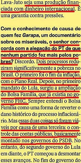 - “ódio cego“: “…Embora me espante o ódio cego por um governo que tirou milhões de brasileiros da miséria e deu oportunidades nunca antes vistas para os pobres do país, não nego, em nome dessas conquistas, as evidências de que o PT montou um projeto de poder amparado por um esquema de corrupção (…);