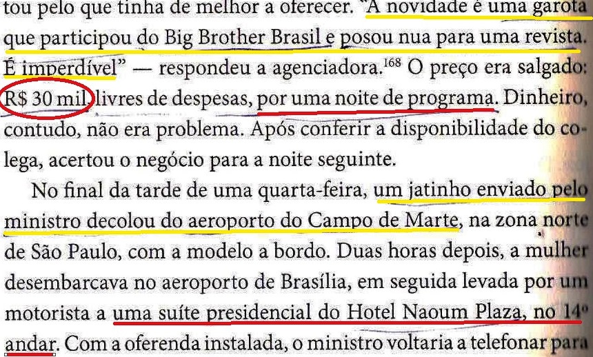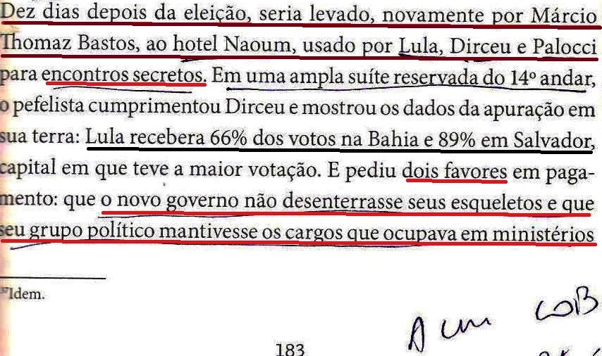 E já que a biografia falou do Blue tree, hotel estrelado por Silvinho, Delúbio, etc, lembremos do Naoum, abrilhantado por Lula. Trata-se do mesmo hotel, aliás, onde, em 2013, a danada da Veja, mais uma vez “MENTINDO”, flagrou alguns senadores do PT e o então presidente da Petrobrás (Gabrielli) saindo de uma reunião, digamos, extraordinária, com o já megalobista Dirceu (veja A RODAVIVA DOS INFRIGENTES, MEU PEDACINHO DE CHÃO, A PAIXÃO DE CRISTO, O QUE É IDEOLOGIA!?, EM FAMÍLIA II…). É, também, o mesmo onde, em 2004, o ainda ministro “Zé” ganharia um lindo presente (fl. 207):
