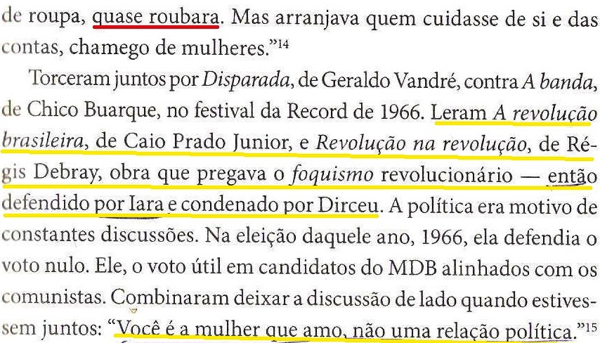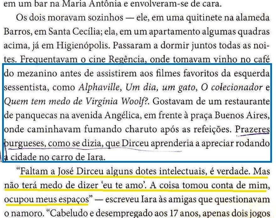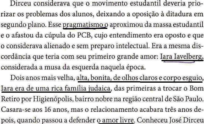Nesse seu rico início de militância, Zé vai encontrar muita gente hoje famosa, leitor. Mas, já que esse papo começou com os presentes que a vida lhe deu, deixa a vida lhe levar com a bela Iara (que viria a ser morta em 1970, em Salvador, tentando ir ao encontro do seu então novo amor, Lamarca):