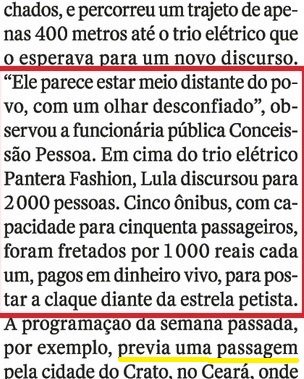 “…Olhar desconfiado…”? Por que, meu deus? Que mentira! Um homem do povo, um retirante nordestino que venceu a tudo (e a todos!), um legítimo representante do povo brasileiro que já arrancou tanto voto orgulhoso dos seus então puros “menas” e “nóis vai” estaria com “…Olhar desconfiado…” por quê, jesuis?