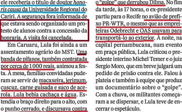 ‘”… Pode ficar tranquilo”‘, disse um dos líderes do MST…” (coluna direita acima). Diz a matéria que o até pouco tempo “O CARA” teve de deixar o aeroporto “pelos fundos“. Um funcionário do Aeroporto, aliás, teria dito que até pensou que ele (o ex-presidente)