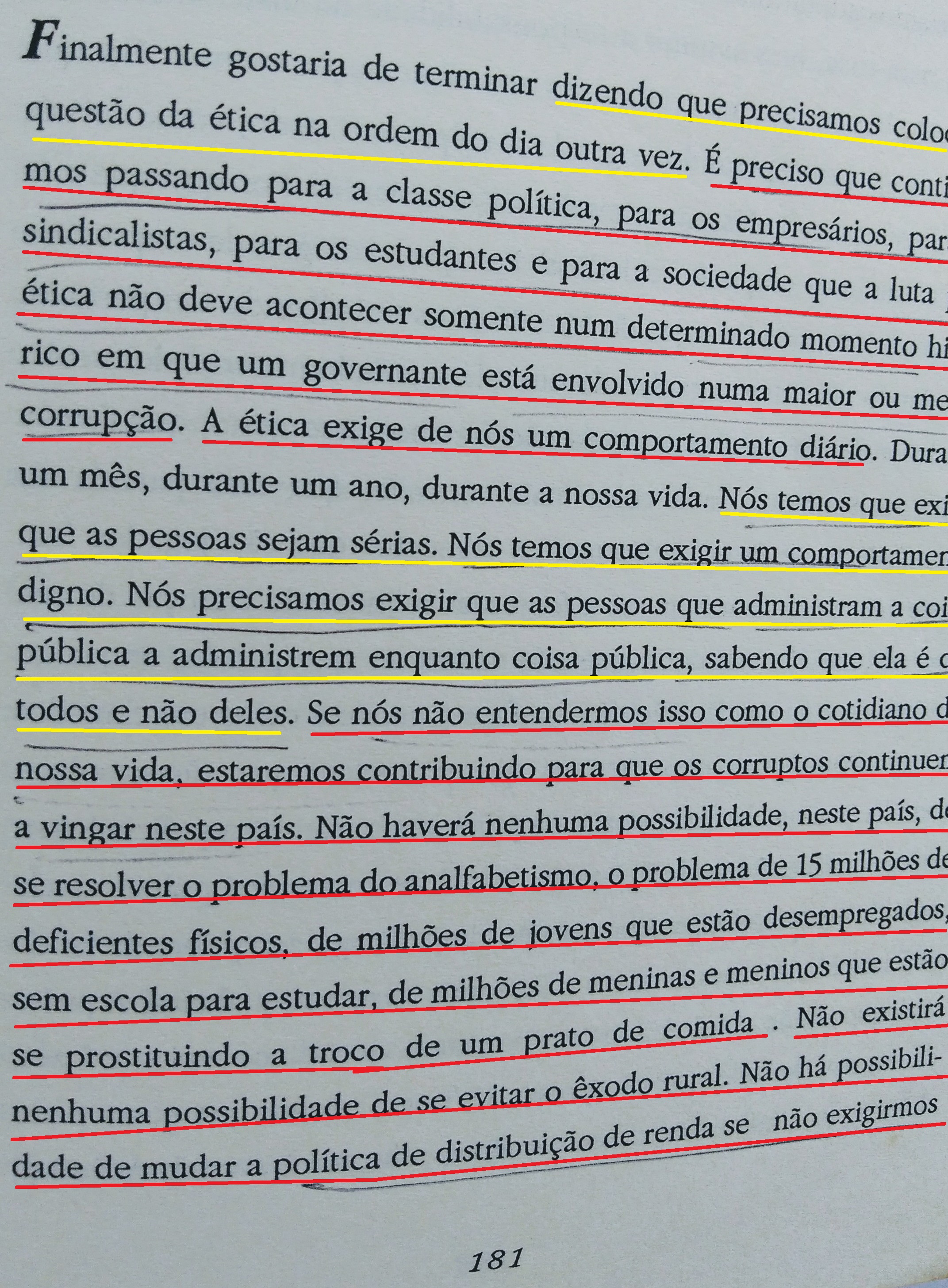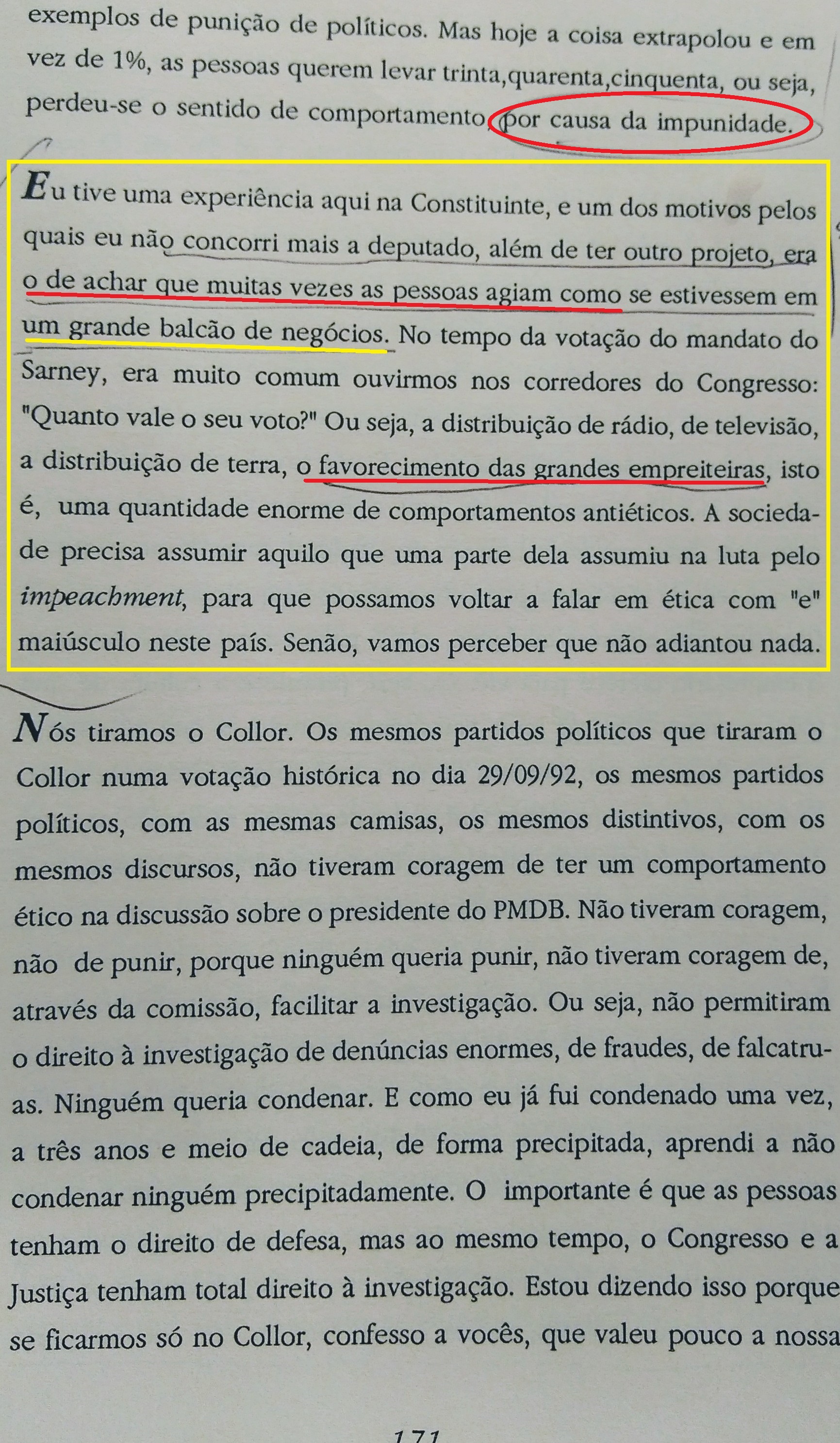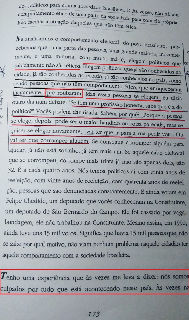 Tá vendo que ele fez palestras, leitor? E as más línguas…, hein? Não só fez como meteu o pau na corrupção, nas empreiteiras e na… Impunidade!! Logo de cara, dois trechinhos: