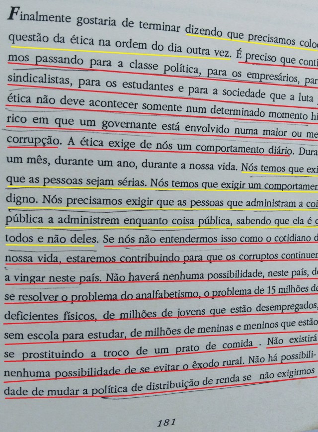 é uma coletânea das 10 palestras que compuseram o FÓRUM DO PENSAMENTO INQUIETO realizado em Brasília, naquele ano. Alguns palestrantes: Cristóvão Buarque, Nelson Coutinho, Betinho, Lindberg Farias e o então presidente do PT, Luiz Inácio Lula da Silva. E ele falou sobre Ética:
