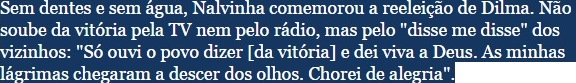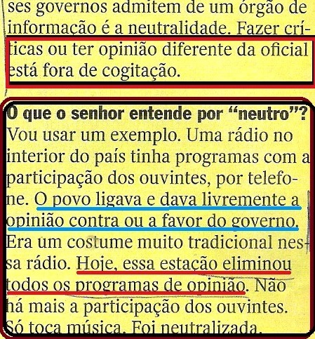 P: … Nesta quarta-feira (…), eu vi anunciado nos três grandes jornais do Brasil que havia um acordo entre a presidente da República e o presidente da Câmara dos deputados para um proteger a impunidade do outro. Eu tenho 64 anos (…), sou repórter político desde os 17 … vi a renúncia do Collor , conheci de perto o Jânio … Mas nunca vi nada parecido… A discussão política no