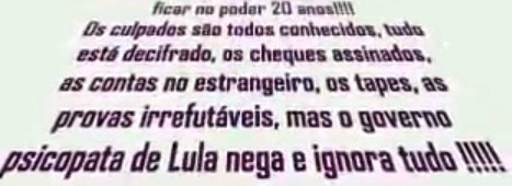 se nada de mal houvessem feito; faz de conta que não foram usadas as mais descaradas falcatruas, para desviar milhões de reais [isso era na época dos milhões, viu leitor? Ainda não se sabia do petrolão], num prejuízo irreversível num país de tantos miseráveis; faz de conta que tais tipos de abusos não continuam se reproduzindo a plena luz, num desafio cínico à supremacia da lei, cuja observância é tão necessária em momentos conturbados…”