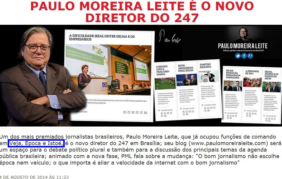 Tudo isso está no quase oficial 247 (2+4+7=?), que, ontem, no centro da sua página, fez propaganda da … danada da Veja! Êta mundo dialético, meu deus!: