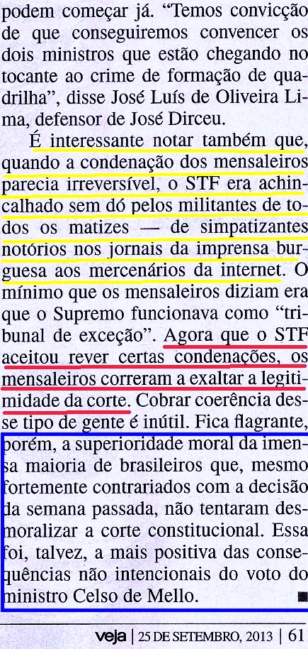 “Os petistas são fascinados por aquilo que chamam “controle da mídia” (…) O presidiário José Dirceu pediu autorização para trabalhar no hotel St. Peter, aquele que mantém em branco na página da Internet o espaço reservado às “crenças e valores”. Por R$ 20 mil mensais, o Zé já entraria como “gerente administrativo”. Como lembrei ontem aqui, a sua experiência anterior com hotéis se limitava à atividade de lobista.