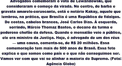 O ano terminou com fenômeno inédito na história da República: mais gente é capaz de recitar de cor a escalação do Supremo Tribunal Federal do que a do ministério. Pode-se mesmo suspeitar que muitos seriam mais capazes de recitar a escalação do Supremo do que a da seleção brasileira, se seleção escalada houvesse.